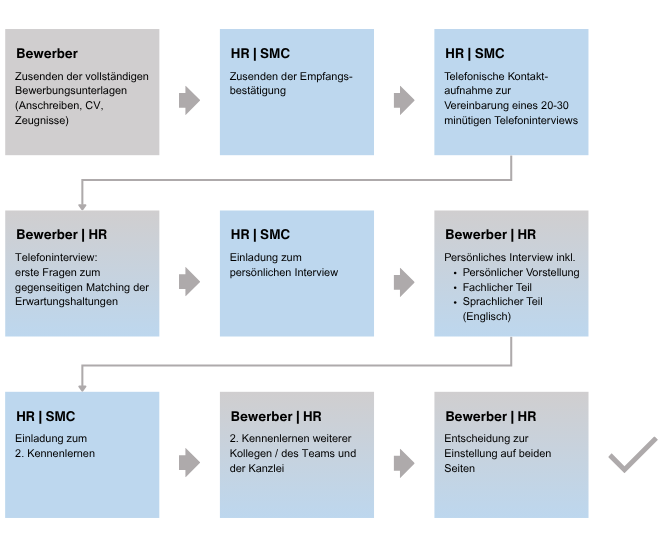- Ein sicherer Arbeitsplatz in einer international tätigen Kanzlei: Bei SMC arbeitest du in einer zukunftssicheren Umgebung. Als Teil einer international tätigen Kanzlei mit namenhaften Mandanten hast du die Sicherheit, dass deine Karriere langfristig auf festem Boden steht.